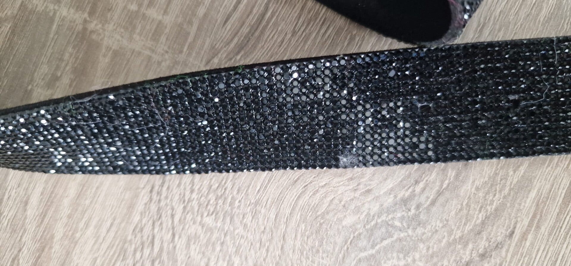 kleur: Zwart, glitter, strassRiemlengte: 95cm 3,5cmVorm: rond gesp, Stretch. pin pas in de hele riemCollectie: Vrouwen, kinderenSeizoen: Alle seizoenenmateriaal: touw, metaal, strass, glitter
